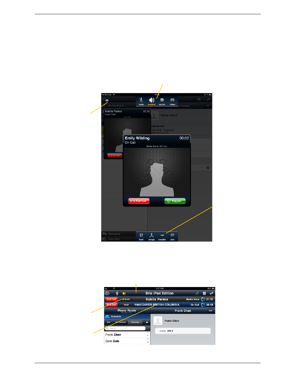 8 handling two established calls, Handling two established calls – CounterPath Bria iPad Edition 2.4 User Guide User Manual