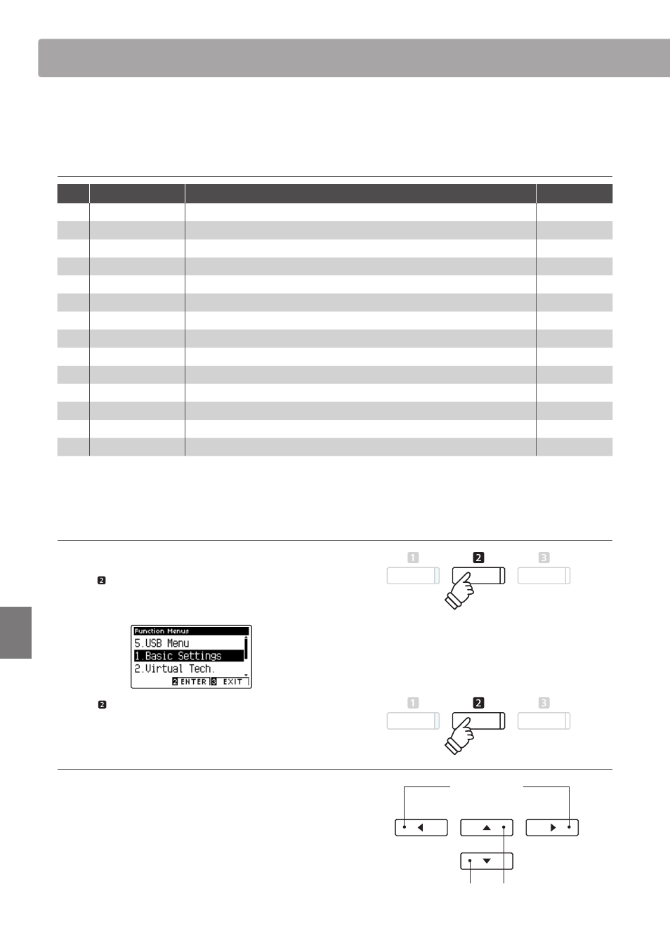 Basic settings, Set tings, Entering the basic settings menu – Kawai CA97 User Manual