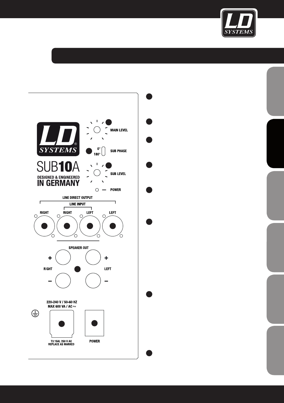 Anschlüsse , bedien- und anzeigeelemente, Ldsub10a – LD Systems LDSAT42G2(W) User Manual