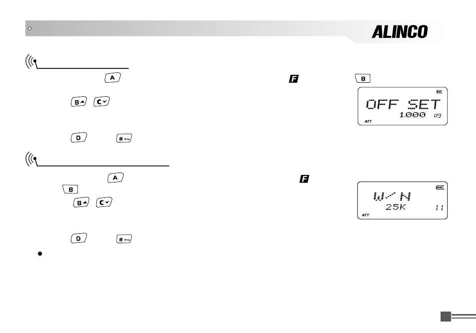 Channel operations, Offset frequency wide/ narrow fm mode – Alinco DJ-100 User Manual