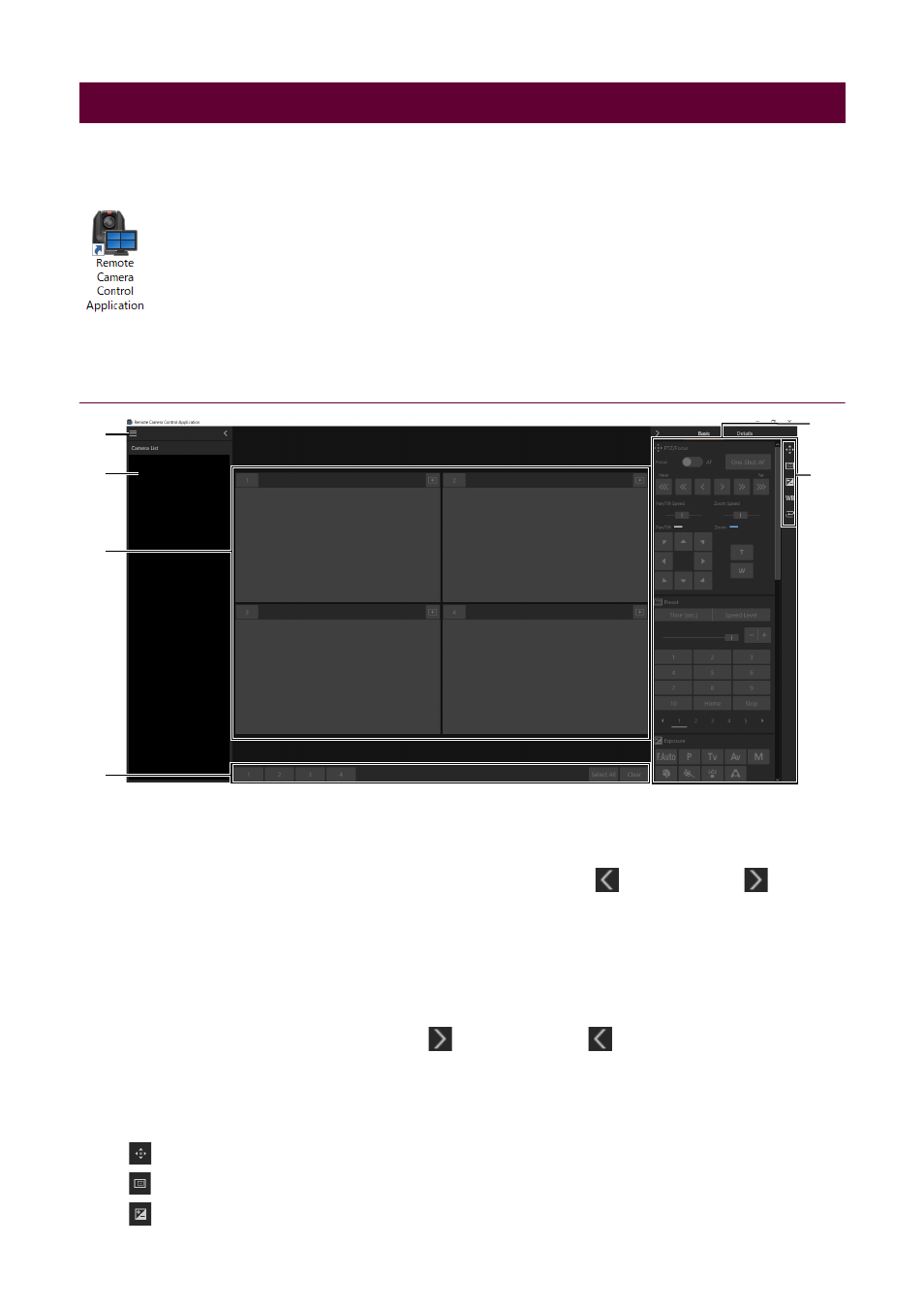 Launching the remote camera control application, Main screen – Canon CR-N700 4K PTZ Camera with 15x (Satin Black) User Manual